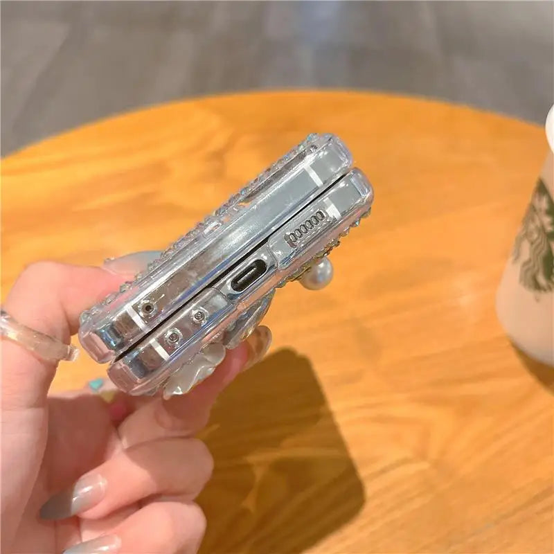About Bling Diamond Flower Bear Case for Samsung Galaxy Z Flip 3/4/5/6: