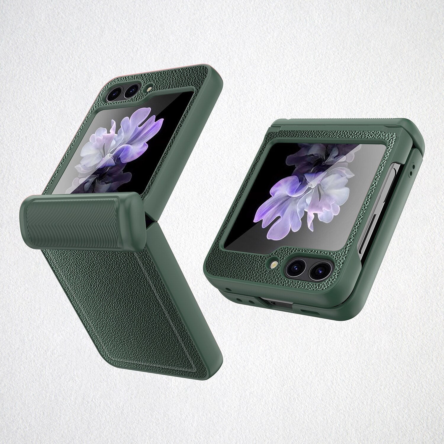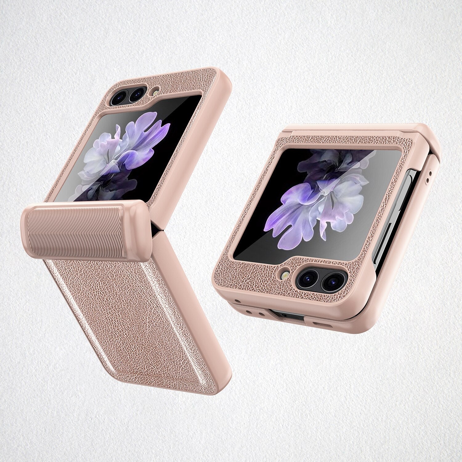 Enhance the style and protection of your Samsung Galaxy Z Flip with our sleek and durable galaxy z flip 5 case. Designed to fit your device perfectly, our Leather Skin Shockproof Cover with Front Screen Glass For Samsung Galaxy Z Flip 5 offers reliable defense against scratches, bumps, and everyday wear and tear.