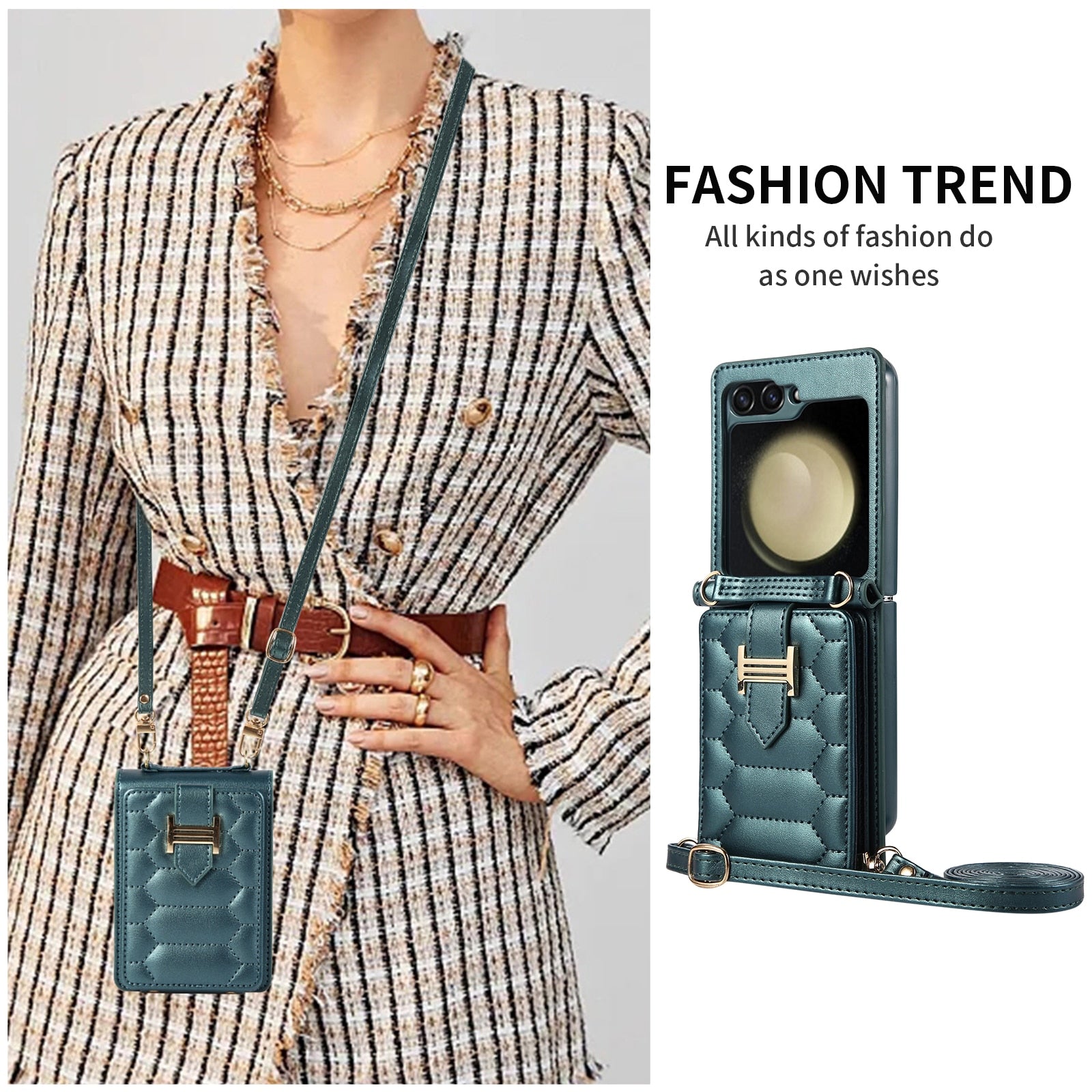 Enhance the style and protection of your Samsung Galaxy Z Flip with our sleek and durable galaxy z flip 5 case. Designed to fit your device perfectly, our Luxury Crossbody Leather phone case offers reliable defense against scratches, bumps, and everyday wear and tear.