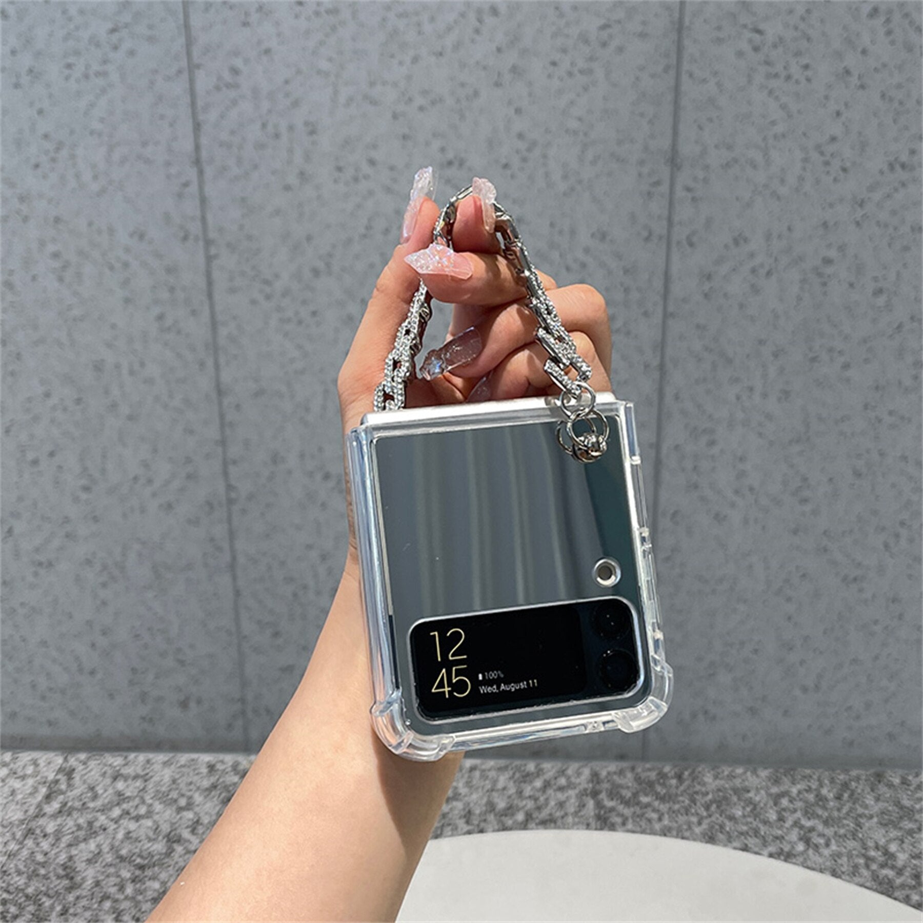 Luxury Rhinestone Bracelet Mirror Case for Samsung Galaxy Z Flip 4