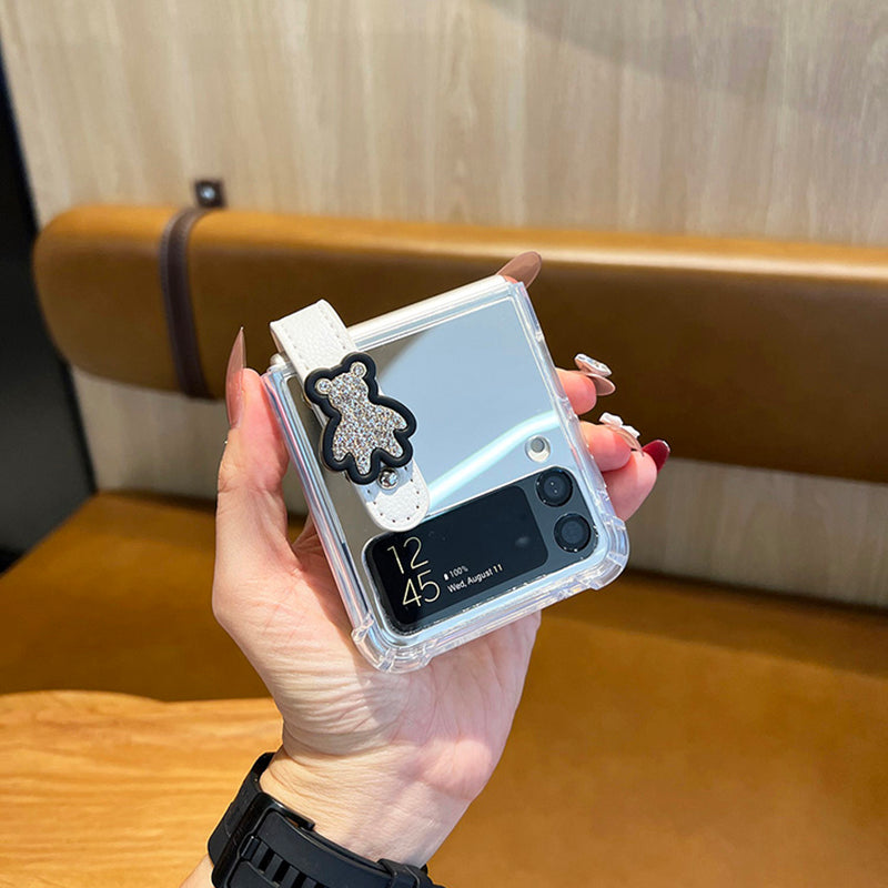 Mirror Case With Leather Wrist Strap Stand For Galaxy Z Flip 4 5G