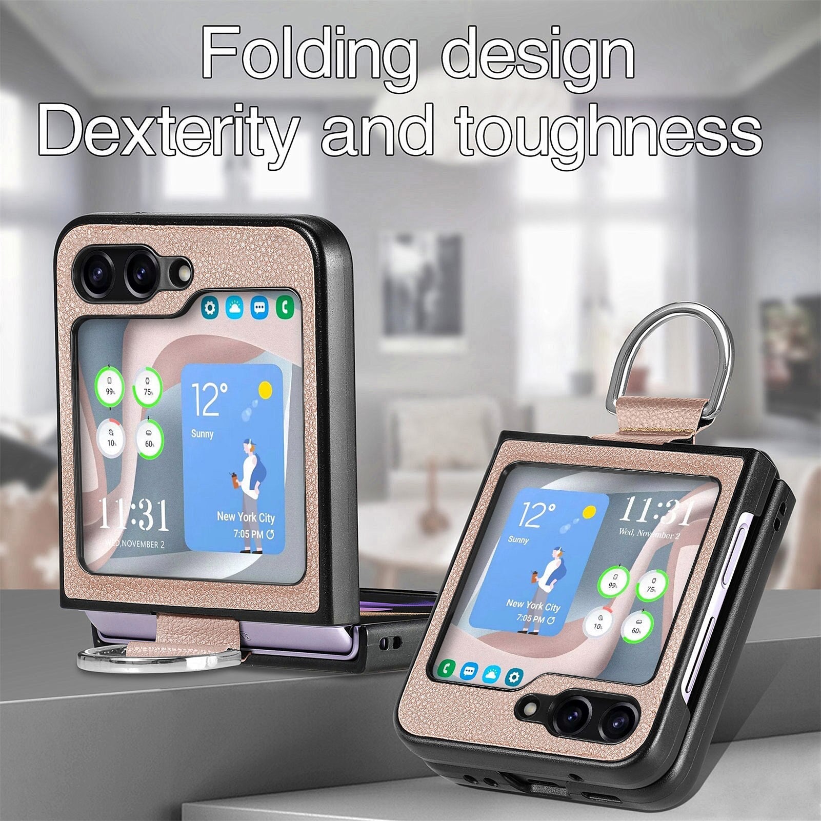 Enhance the style and protection of your Samsung Galaxy Z Flip with our sleek and durable galaxy z flip 5 case. Designed to fit your device perfectly, our Shockproof Leather Portable Ring phone case offers reliable defense against scratches, bumps, and everyday wear and tear.